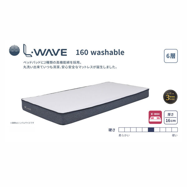 【軒先渡し】ルービックJP L-WAVE ウォッシャブルシルキーファイバーマットレス 厚み16cm セミダブル LWW16-SD 1枚(直送品)