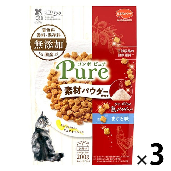 コンボ ピュア キャット まぐろ味・鶏パウダー仕立て 無添加 国産 200g(小分け2袋)1セット(1個×3)キャットフード