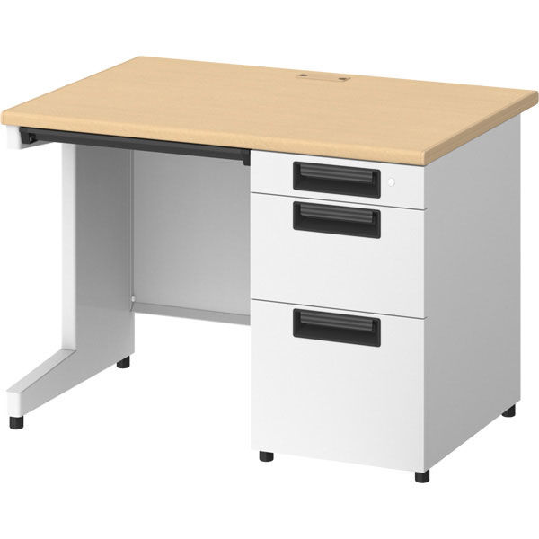 プラス スチールOAデスク フラットライン+(プラス) 片袖机 メープル天板/ホワイト脚 幅1000×奥行700×高さ720mm 1台(2梱包)