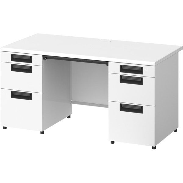 プラス スチールOAデスク フラットライン+(プラス) 両袖机 ホワイト天板/ホワイト脚 幅1400×奥行700×高さ720mm 1台(3梱包)