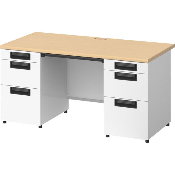 プラス スチールOAデスク フラットライン+(プラス) 両袖机 メープル天板/ホワイト脚 幅1400×奥行700×高さ720mm 1台(3梱包)