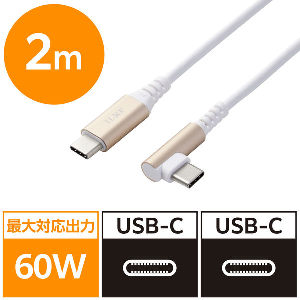 USB-Cケーブル USB Type C to C 2m L字 ILMF 白 U2C-CCL20NWH-IL エレコム 1個