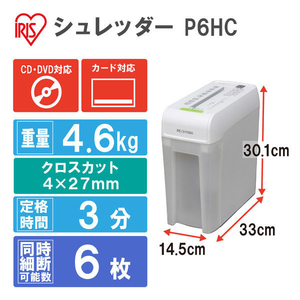 A4 クロスカットシュレッダー (8.8L/最大細断枚数6枚) P6HC アイリスオーヤマ(わけあり品)