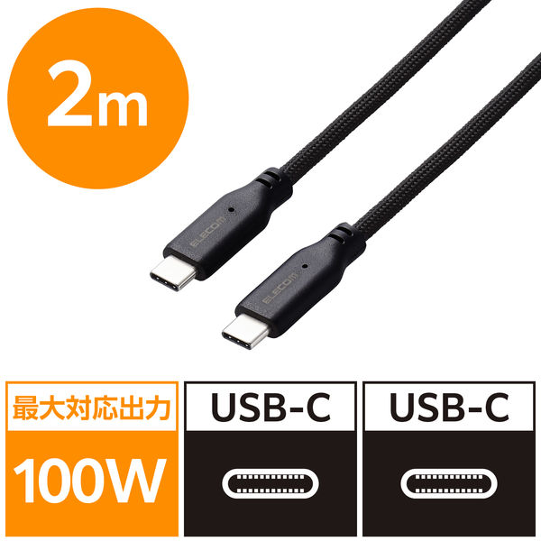 タイプCケーブル (USB-C to C) 2m PD 100W 磁石 黒 MPA-CC5PMG20BK エレコム 1個