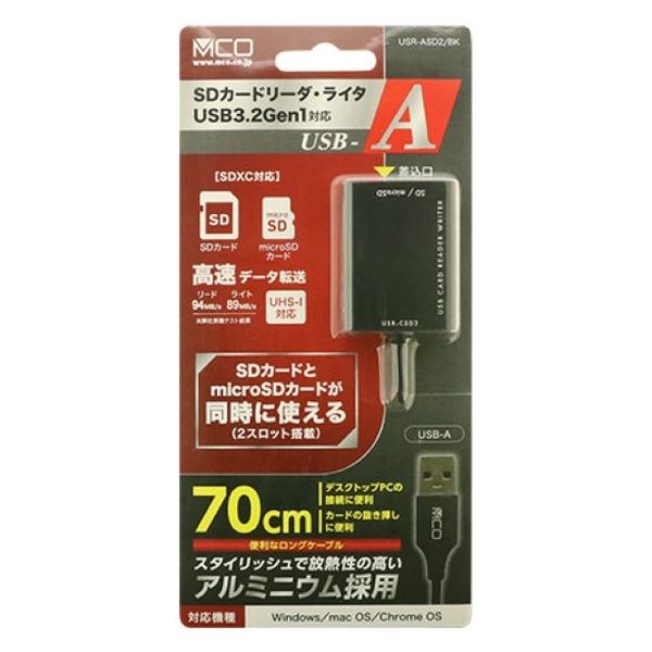 | 商品の特徴 | ■SDカード・microSDカード同時使用可能■放熱性が高く、高級感のあるアルミニウム素材■最大1TBまで対応のSDXC規格対応■USB3.2Gen1+UHSー1規格対応■他の機器にぶつかりにくいケーブル一体型■70cmのロングケーブル | ||