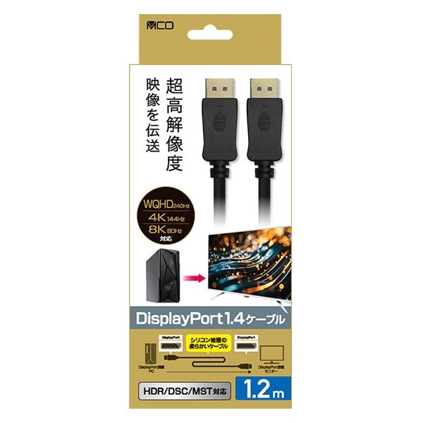 | 商品の特徴 | DisplayPort1.4に対応し、8K/60Hzや4K/144Hzの映像表示が可能。シリコン被覆、ラッチレスコネクタで取り回しがしやすい。HDR/DSC/MST対応<BR>RoHS指令(10物質)対応。 | ||