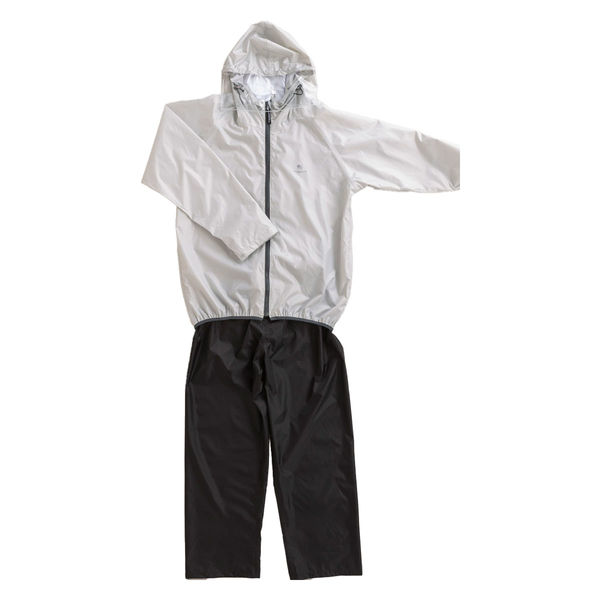 | 商品使用上の注意2 | ・ジャケットは、透湿素材を使用しておりムレにくいですが、急激な発汗や急激な温度変化などの状況下においては、衣服内が結露しムレを感じることがありますが、雨漏りではありません。また、パンツは通気性のない素材を使用しているためムレることがあります。・防水素材を使用し、縫い目から水の侵入を防ぐ防水テープ加工を施しておりますが、強い雨の中で使用した場合や強く風圧を受ける場合には、部分的に水が侵入するおそれがありますのでご注意ください。・たばこの火やたき火などの熱源のそばにおくと軟化したり変形することがありますのでお避けください。・ご使用の有無にかかわらず、時間が経過すると生地が劣化したり、変色するおそれがありますのでご注意ください。また、使用頻度・お手入れ方法・保管状況などによっては、生地の寿命が短くなることがありますのでご注意ください。・はっ水は永久的なものではなく、繰り返しの着用や汚れの付着により効果は低下します。はっ水が弱くなりましたら、弱い手洗いで汚れを落とし市販のはっ水スプレーでお手入れをするか、クリーニング店ではっ水加工を依頼してください。・洗濯や着用時の摩擦で表面の被膜がはく離することがありますのでご注意ください。・汚れは中性洗剤をぬるま湯で溶かして、弱い手洗いをして水で洗い流してください。・漂白剤は使用しないでください。・洗濯機や脱水機・乾燥機を使用すると、防水テープがはがれるおそれがありますのでお避けください。・ドライクリーニングは溶剤の種類を問わずお避けください。濡れた状態で放置しないでください。色落ちや色移りすることがあります。・ご使用後や洗濯後は陰干ししてよく乾いてから風通しの良い場所で保管してください。・直射日光や電灯に当たる場所に長時間さらすと、色あせのおそれがありますのでお避けください。 | カラー | ジャケット:Lグレー/パンツ:ブラック |