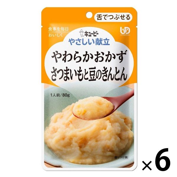 本商品:介護食 やわらか食 キユーピー 舌でつぶせる さつまいも豆きんとん 80g 1セット(6袋入) |