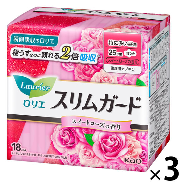 【生理用品】 ナプキン 特に多い昼用 羽つき 25.0cm スリムガード スイートローズの香り 1セット(1パック(18コ入)×3)花王