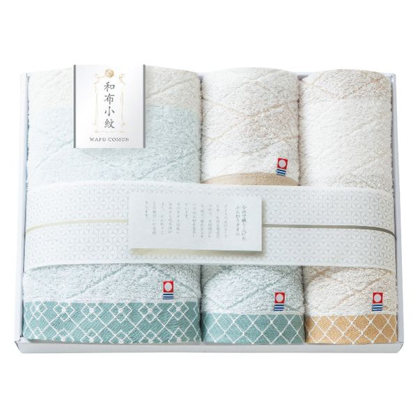 商品仕様 60×110cmバスタオル1枚・34×75cmフェイスタオル2枚・30×34cmウォッシュタオル1枚・綿100%・[日本製] 包装 あり