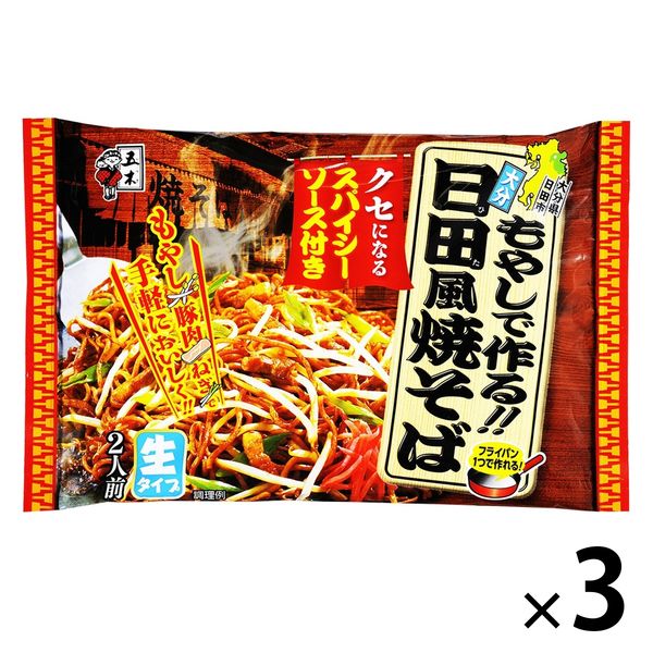 | 商品の特徴 | もやしで作る!!日田風焼きそば。カリッと焼ける弾力のある蒸し麺です。焦がさず作るとモチモチとした弾力ある食感が楽しめ、焦がして作るとカリカリの香ばしさとモチモチと弾力ある食感が楽しめます。ソースは野菜とりんごの旨味を効かせ、ラードの濃厚感が合わさった液体タイプです。常温で長期保存可能で、肉ともやしで簡単に調理できます。 | ||