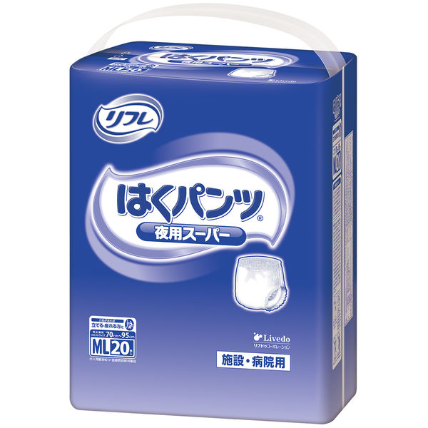 本商品:リフレ 大人用紙おむつ 病院・施設用 はくパンツ夜用スーパー ML 1箱(80枚:20枚入×4パック) リブドゥコーポレーション |