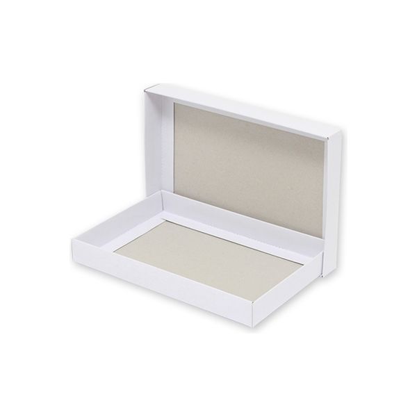 汎用性のある白無地の組立箱です。フタと本体を別々に組み立てるかぶせブタ式です。身・フタ共に表面に光沢を持たせています。
