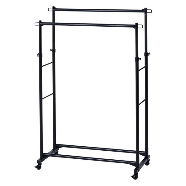 | 商品の特徴 | 高耐荷重設計でたくさん掛けてもぐらつきにくく、安定感抜群です。高さは5cm間隔で、12段階調整可能です。服の丈に合わせて高さを決め、ボルトでしっかり固定できます。ハンガー下のスペースは収納物やボックスなどが置け、空間を有効活用できます。キャスター付きで移動がスムーズに行えます。ハンガーだけでなく、キャスターやねじなどのパーツもすべてブラックで統一しています。マットな質感でインテリアにも馴染み、キズやサビに強い塗装で長くお使いいただけます。お客様組み立てとなります。 | ||