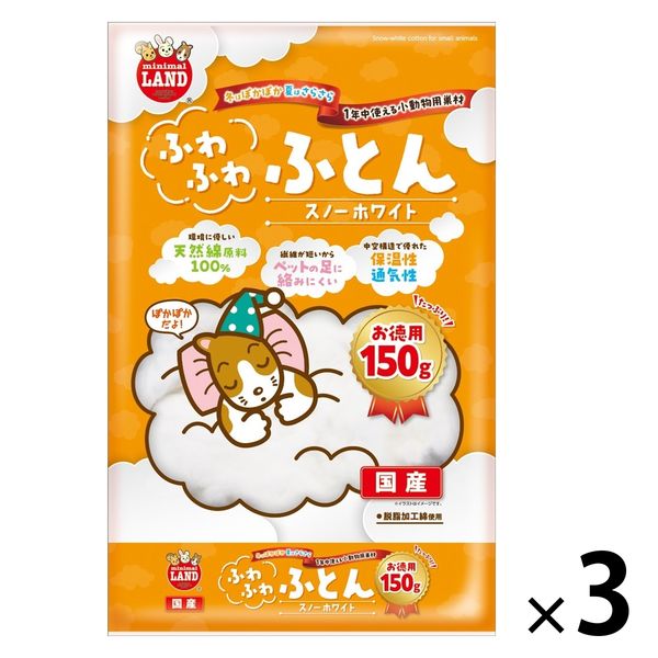 ミニマルランド 小動物用 ふわふわふとん スノーホワイト 国産 お徳用 150g 1セット(1袋×3)マルカン 小動物 巣材