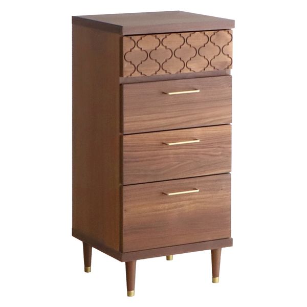 | 材質 | 天板:強化紙化粧板 本体:プリント化粧板 上前板:アルダー無垢(ウレタン塗装) 下3段:強化紙化粧板 脚部:ラバーウッド無垢(ウレタン塗装) 先端:金色塗装 | カラー | ブラウン |