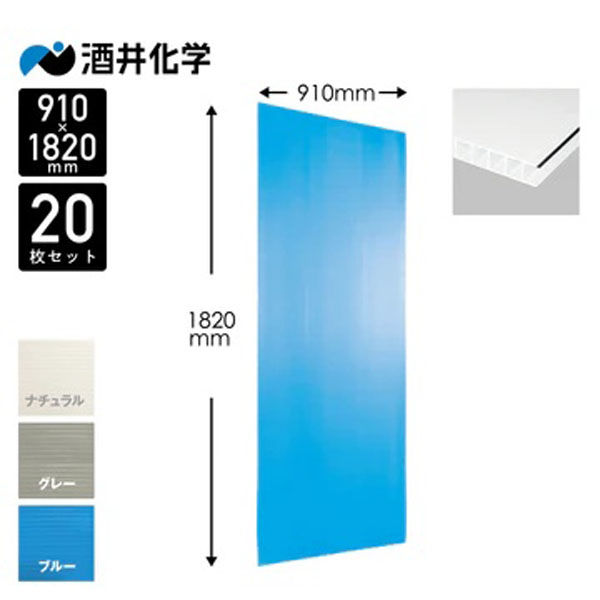 酒井化学工業 プラダン 3*910*1820 ブルー500目 20枚 135179 1セット/20枚(直送品)