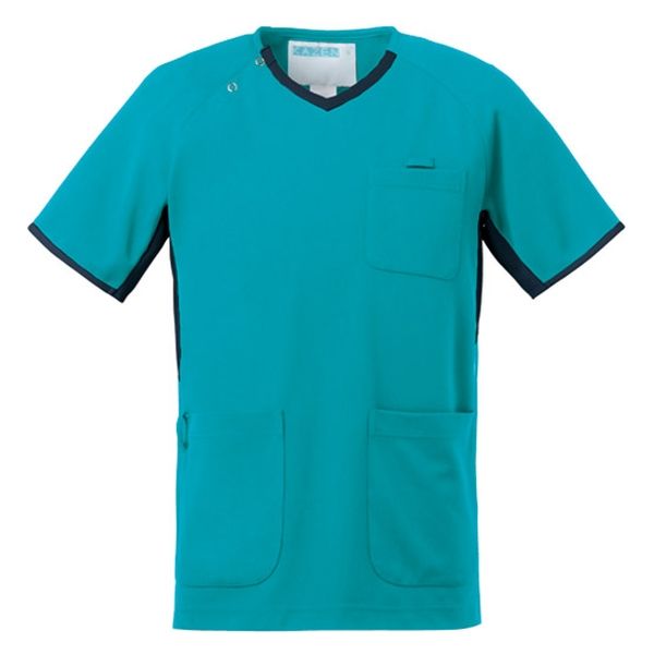 KAZEN スクラブ 男女兼用 ターコイズ×ネイビー L 983-42 1枚 スクラブ(直送品)