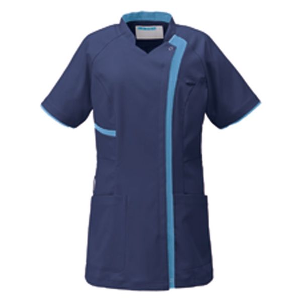 KAZEN レディススクラブジャケット半袖 ネイビー×ターコイズ 3L KZN702-48 1枚 スクラブ(直送品)