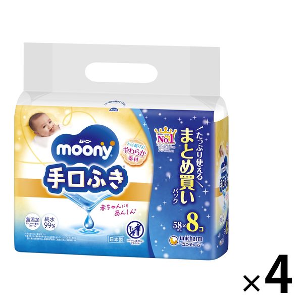 本商品:ウェットティッシュ ノンアルコール ムーニー手口ふき 詰替 1セット(58枚×8個入×4パック) ユニ・チャーム |