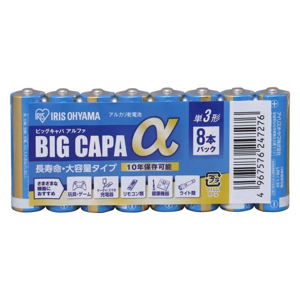 アイリスオーヤマ BIGCAPAα アルカリ乾電池 単3形8本パック LR6IB/8S 1セット(40本入)