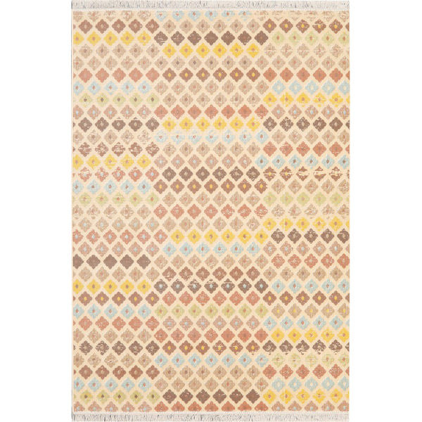 トライバルデザインをペールトーンカラーでカラーリングし織りあげたキリム調のウィルトンカーペット