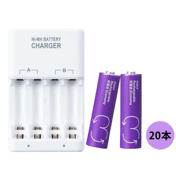 アスクルオリジナルの単3形充電式ニッケル水素電池とニッケル水素充電池専用充電器のセット品!