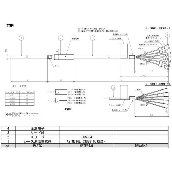 | センサ種類 | Pt100Ω | リード線種類 | 塩化ビニル被覆 |