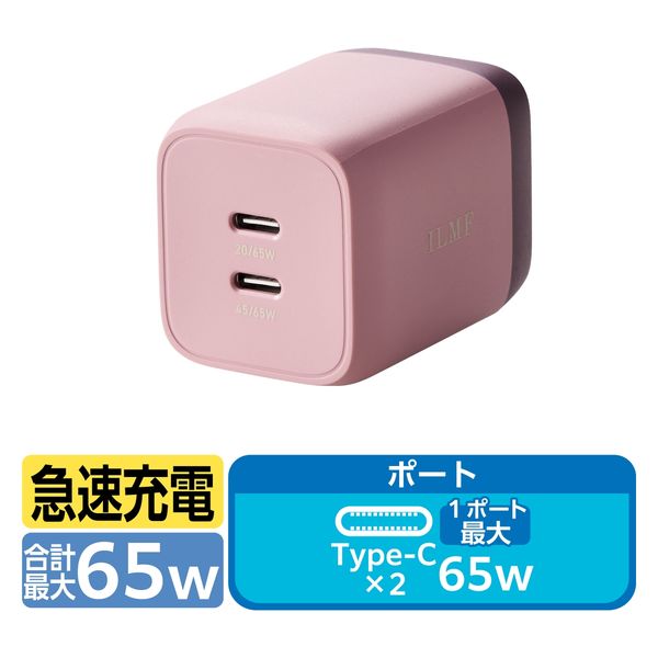 USB充電器 タイプC PD 65W USB-C×2 ILMF ピンク MPA-ACCP43PN-IL エレコム 1個