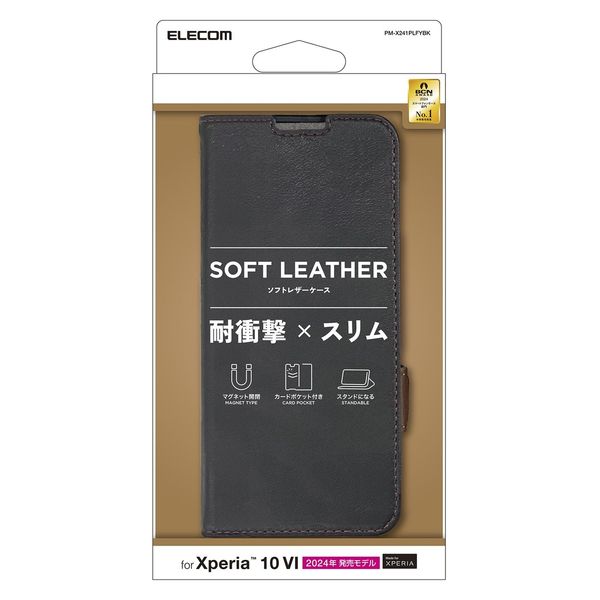 Xperia 10 VI SO-52E ケース レザー 手帳型 衝撃吸収 ブラック PM-X241PLFYBK エレコム 1個