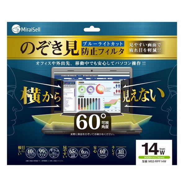 | 商品の特徴 | 可視確度60°で横から覗いても見えない!ブルーライトも約40%カット。アンチグレアカットでぎらつきもなく、目に優しいのぞき見防止フィルター | ||