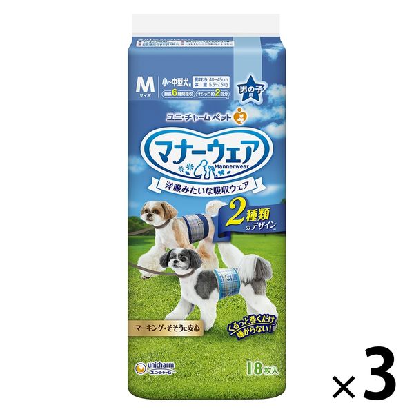 マナーウェア 男の子用 Mサイズ 小~中型犬用 18枚 ペット用 3袋 ユニ・チャーム
