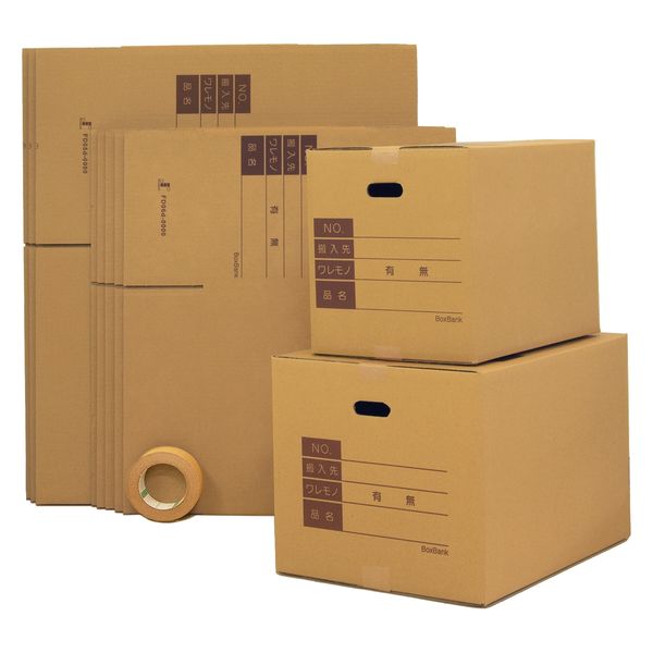 | 商品の特徴 | 届いてすぐに荷造りができる、単身向けの引越しセットです。ダンボール箱(大・中)10枚にクラフトテープ1巻が付いています。ダンボール箱はサイズが2種類で、使い分けることで無駄なく梱包ができ、記入欄と取っ手穴付きなので荷造りや荷解き・持ち運びなどの引越し作業がスムーズに進みます。 | ||