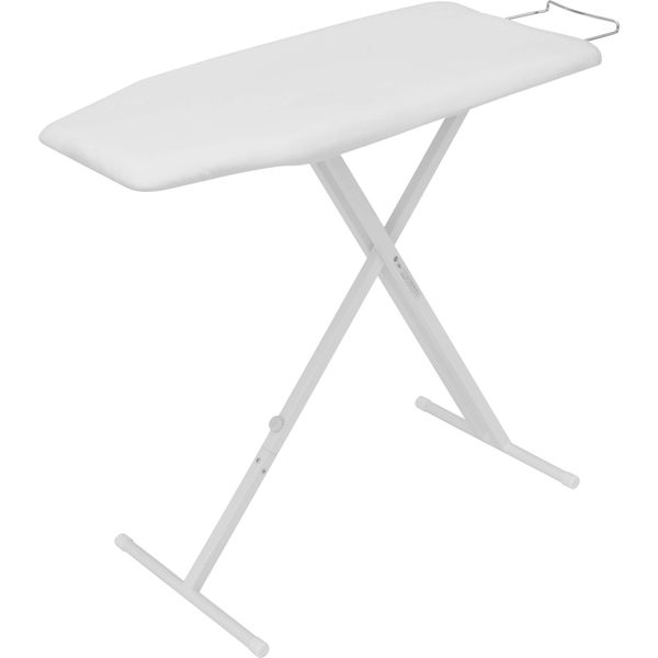 | 材質 | 表面布:綿100% クッション材:ポリエステル 天板・脚部:スチール(粉体塗装) ボタンプレスゾーン(凹凸吸収クッション):ポリウレタンフォーム アイロン置き台:スチール(クロームメッキ) キャップ:ポリエチレン | 質量 | 4000g |
