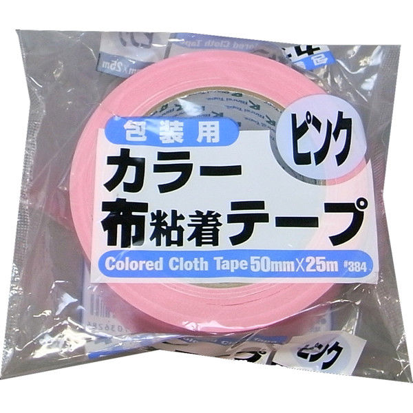 リンレイテープ カラー布粘着テープNO.384 50mmX25m ピンク RT384-PINK5025 1個