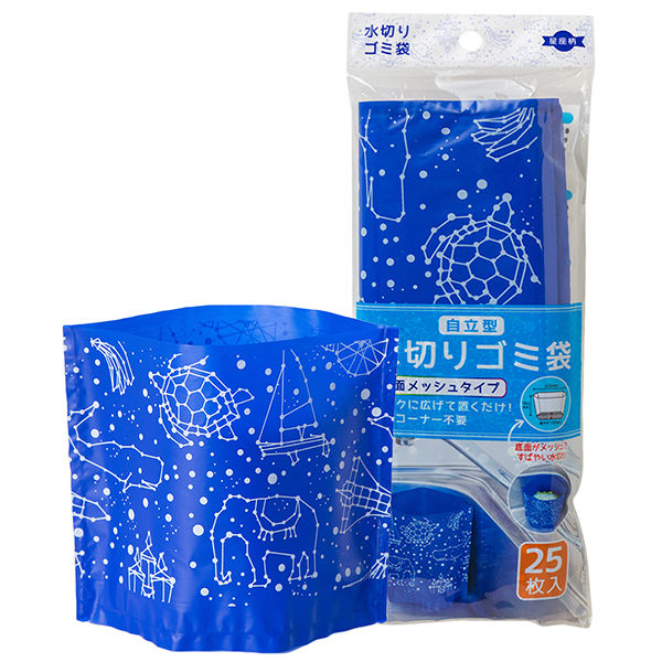 自立型 水切りゴミ袋 星座柄 底面メッシュタイプ 三角コーナーいらず 25枚入 1袋 ネクスタ