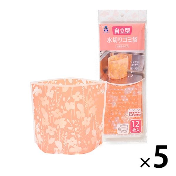 本商品:ごみっこポイ 自立型 水切りゴミ袋 スタンドタイプ E 花柄 ピンク 12枚入 1セット(1袋×5)ネクスタ