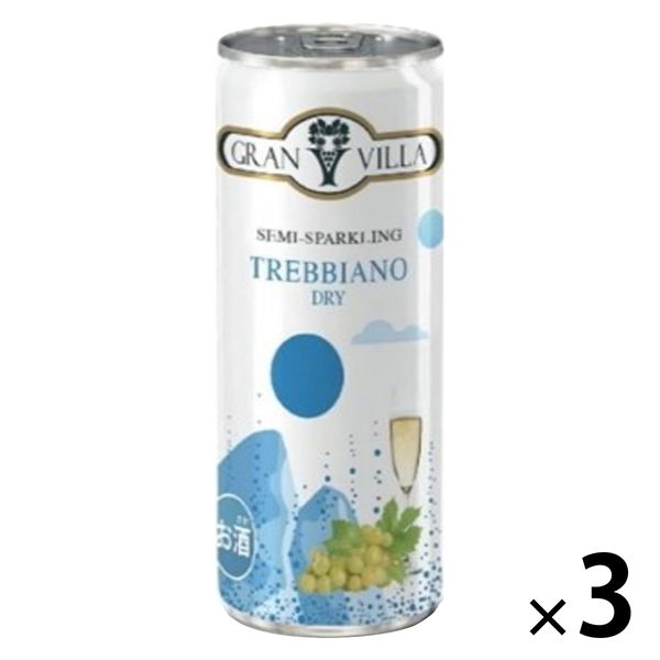 イタリア グランヴィラ トレッビアー セミスパークリングワイン 白 辛口 250ml 缶 1セット(1本×3本) メモス 飲み切り