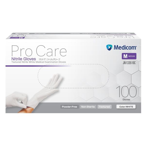 メディコムジャパン プロケア ニトリルグローブ 100/箱 ホワイト Mサイズ JN133510C 1箱(100枚入)