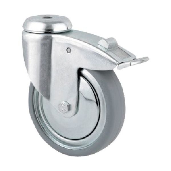 | 商品の特徴 | ●ドイツ製の信頼・耐久性を備えた、標準的なキャスターです。●耐ホコリ、ゴミを巻き込みにくいスレットガード付です。●タイヤはノンマーキング仕様です。●自在式(トータルロック付)、ボルト穴式 | ||