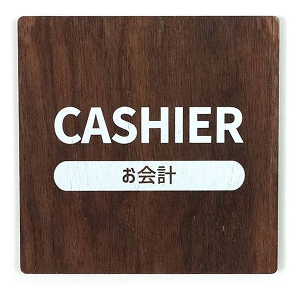 LALLABOX ウッドサインプレート CASHIER TYPE1-1 90*90 ウォールナット 458261475 1枚(直送品)