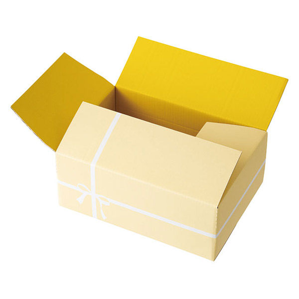 商品の特徴 内側には撥水加工をしており、冷凍・冷蔵商品のクール便にもオススメ。リボンのデザインと内側の幸せカラーの黄色が商品を明るく見せ、ギフトのワクワク感もアップ!宅配用ダンボールとギフトボックスの2役がこれ一つで叶います。商品のサイズに合わせて高さを2段階調整できるミシン目入り。