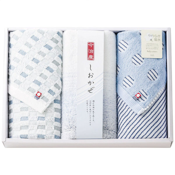 | 商品仕様 | 34×75cmフェイスタオル2枚・34×35cmウォッシュタオル1枚・綿100%・[日本製] | 包装 | あり |