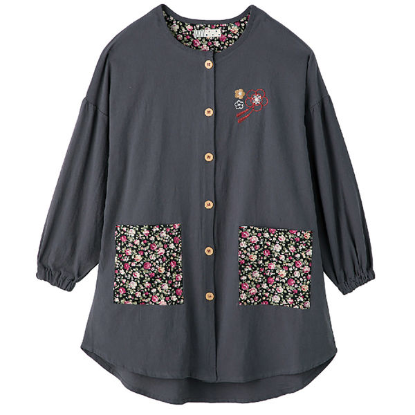 ケアファッション 前開きスモック 汚れ防止 前開き脱ぎ着簡単 手口ゴム入り 通年 GY M~L 80030721 1着(直送品)