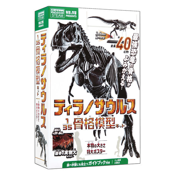 | 商品の特徴 | 最強恐竜ティラノサウルスの1/ 35サイズ骨格模型と、頭骨の一部を実物大で掲載したポスターがセットになったキットです。北海道大学総合博物館 小林快次博士監修のガイドブックつきで、恐竜の体のつくりやティラノサウルスの生態がよくわかります。夏休みの自由研究や理科の実験、工作におすすめです。 | ||