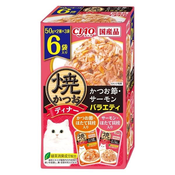 いなば CIAO チャオ 焼かつおディナー かつお節・サーモンバラエティ 国産(50g×6袋)1箱 キャットフード 猫用 パウチ