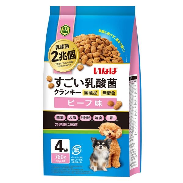 いなば すごい乳酸菌クランキー 総合栄養食 ビーフ味(190g×4袋入)国産 1袋 ドッグフード