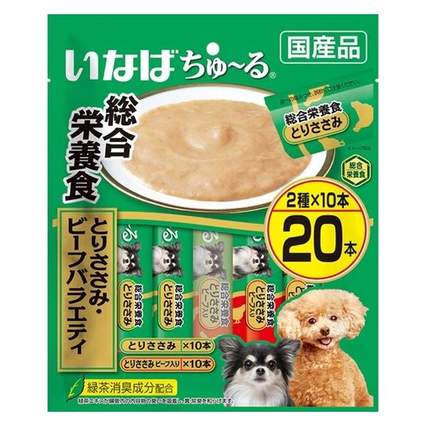 いなば ちゅ~る 総合栄養食 とりささみ・ビーフバラエティ 国産(14g×20本入)1袋 ちゅーる ドッグフード