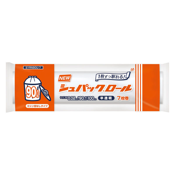 ゴミ袋 半透明 シュパックロール 普通 90L 7枚入 1パック 厚さ:0.02mm オルディ