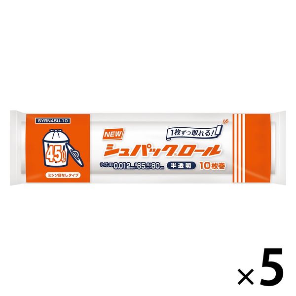 ゴミ袋 半透明 シュパックロール 普通 45L 10枚入 5パック 厚さ:0.012mm オルディ
